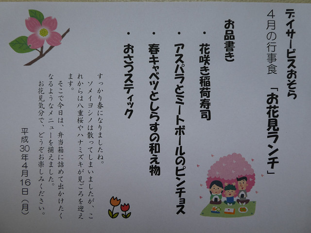 今月のテーマは ?お花見ランチ? です。