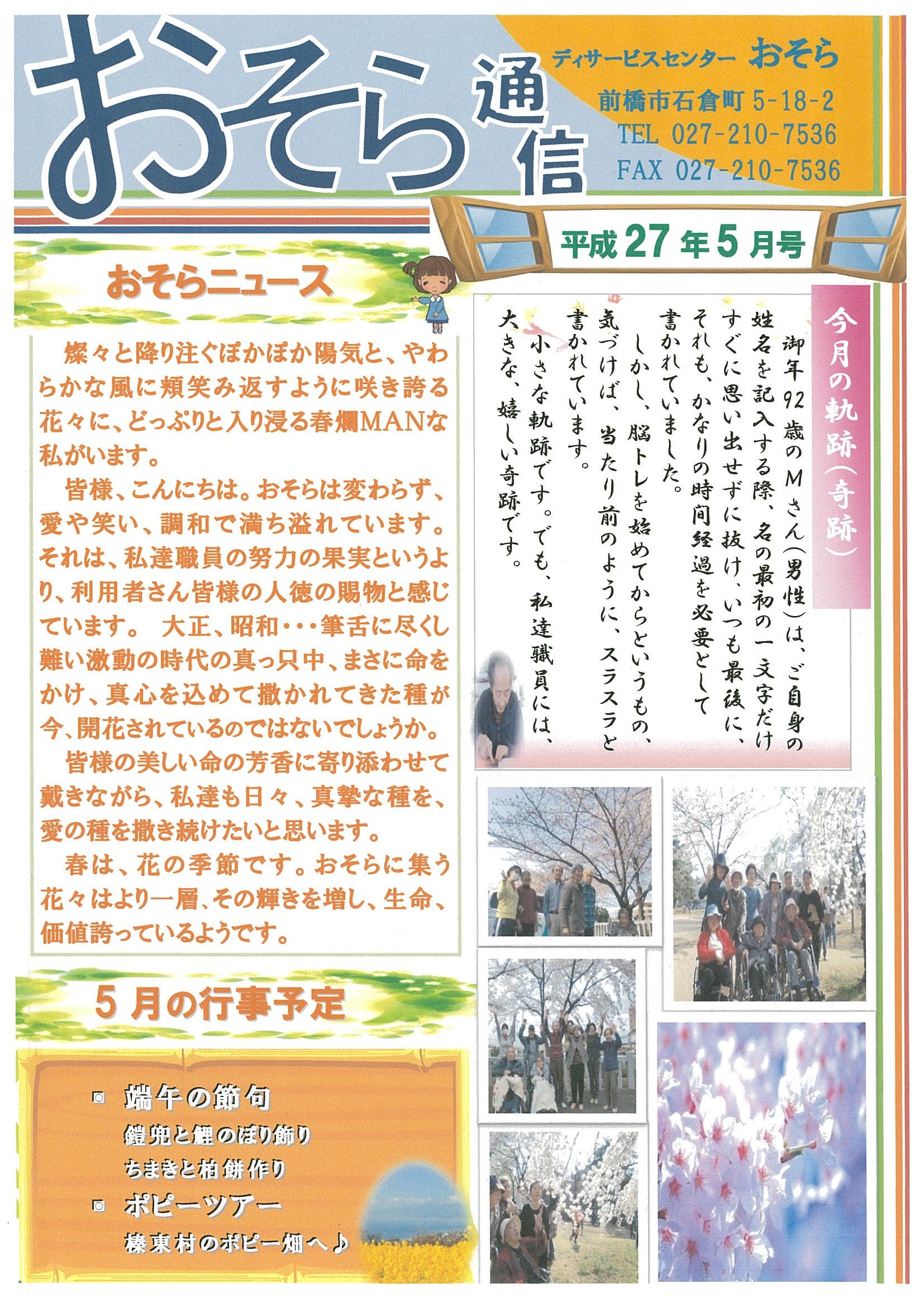 しかし、今月もおそら通信は、温かい話題でいっぱいです。