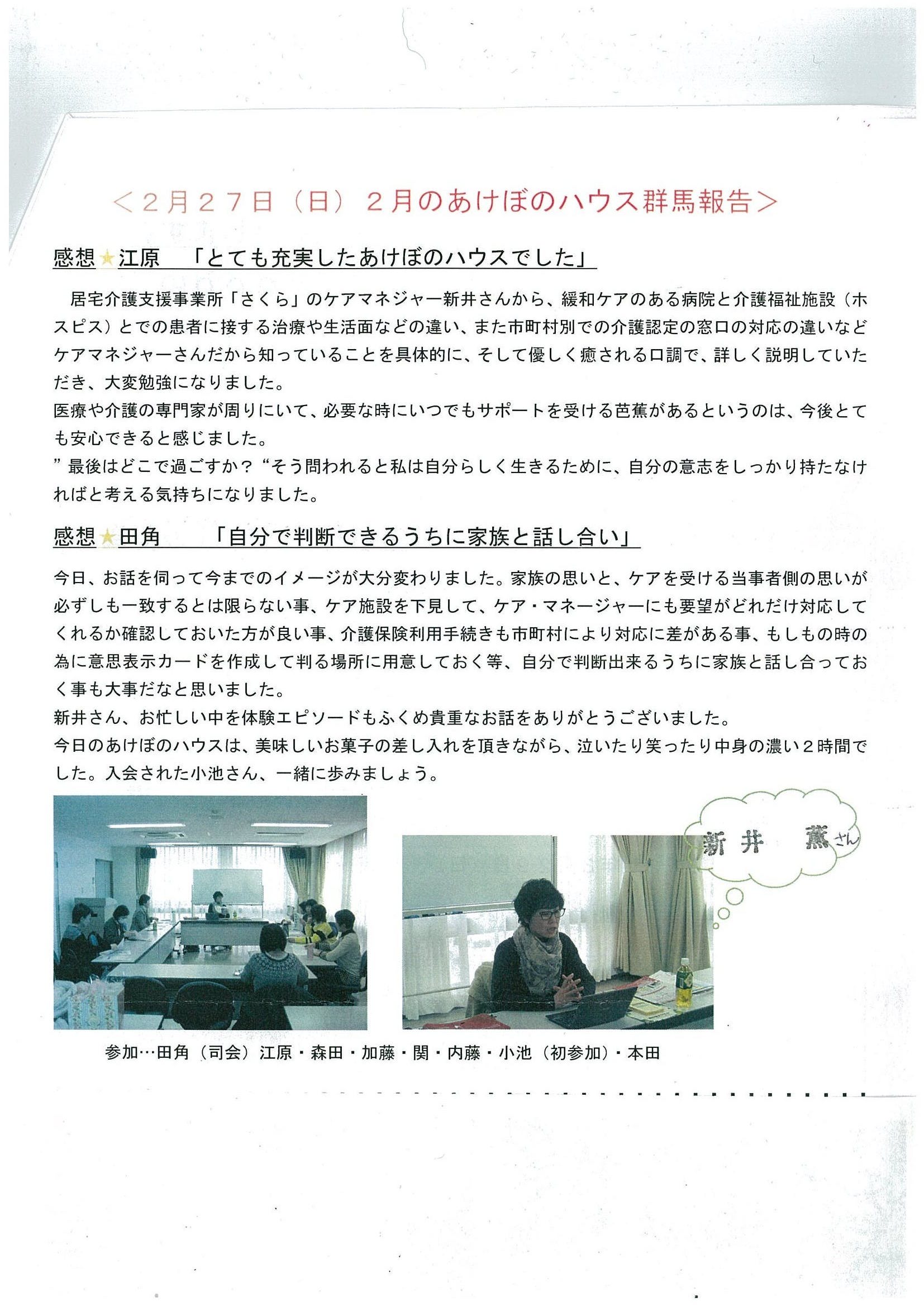 その時の様子を 【あけぼの群馬便り NO.49】 に紹介していただきました。