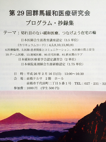 『第29回 群馬緩和医療研究会』 が行われました。